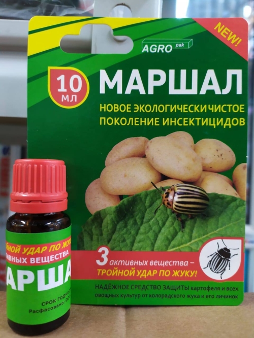 Маршал оригинал Инсекто-фунго-стимулятор Убивает на смерть насекомые, Колорадский жук модель: маршал Цена:320 тг Коробка: 120 штук